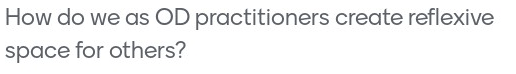 A deep and questioning awareness of our human agency and interrelatedness with others is demanded in order that we are able to engage meaningfully with workplace power as OD practitioners – and that is precisely what we call reflexivity in this context.