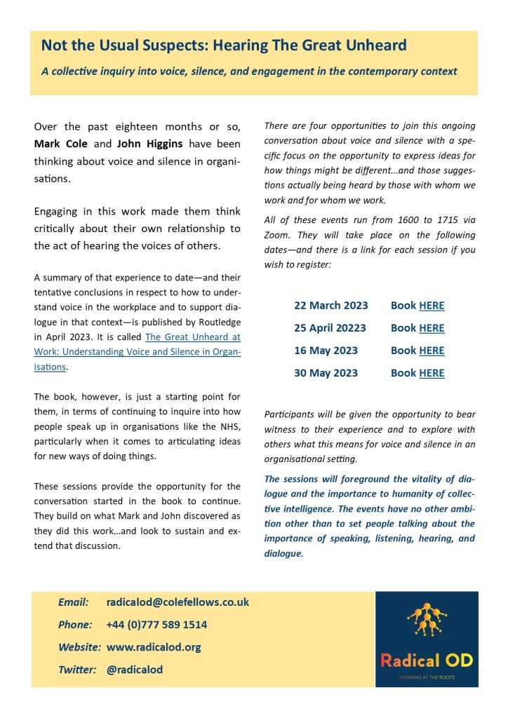 February 3, 2023Mark Cole Not The Usual Suspects Conversational events March-May 2023 Register on Eventbrite Register on Eventbrite Register on Eventbrite Register on EventbriteShare this: Click to share on X (Opens in new window) X Click to share on Facebook (Opens in new window) Facebook Like Loading...